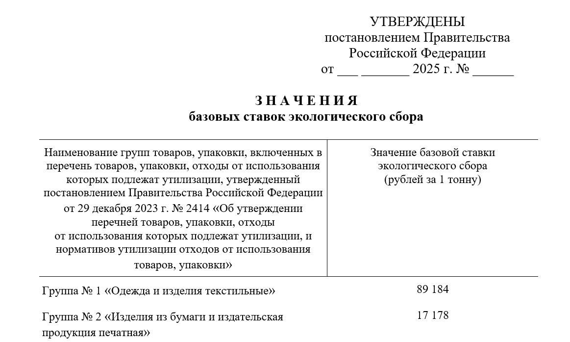 №3. Повышение ставок экологического сбора. Ожидается изменение финансовой нагрузки на производителей и импортеров товаров в рамках расширенной ответственности. Минприроды России подготовило проект постановления Правительства, предлагающий новые базовые ставки экологического сбора с 1 января 2026 года.