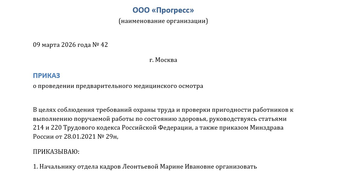 Приказ о проведении медосмотра: образец
